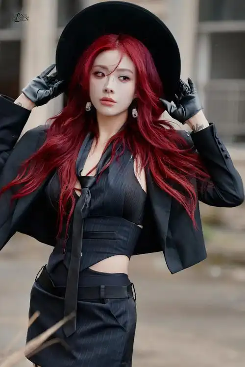 喻言黑色玫瑰皮裙造型
