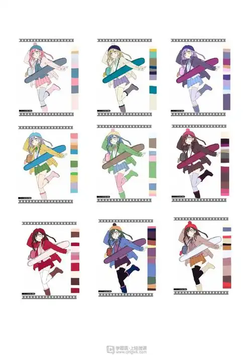 配色练习角色插画人物配色训练
