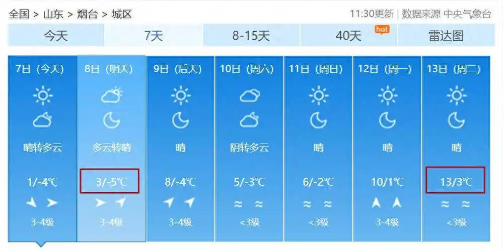 烟台天气2月8日温度41晴转多云