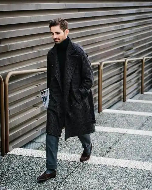 讲真,"黑色大衣"才是2022年冬季的百搭款,45岁男人穿更时髦