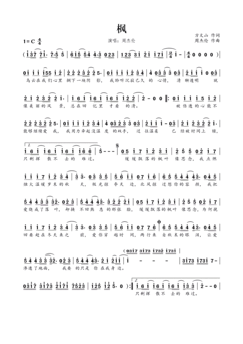 《枫》简谱周杰伦原唱 歌谱-钢琴谱吉他谱|www.jianpu.net-简谱之家