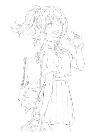 二次元校园女生手绘线稿