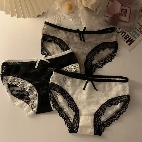 法式浪漫两侧透明舒适内裤女低腰柔软丝滑性感女生三角裤3条装