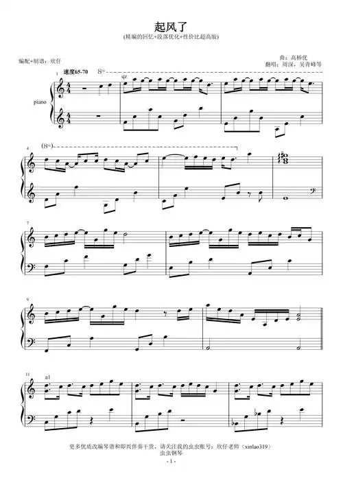 起风了钢琴谱