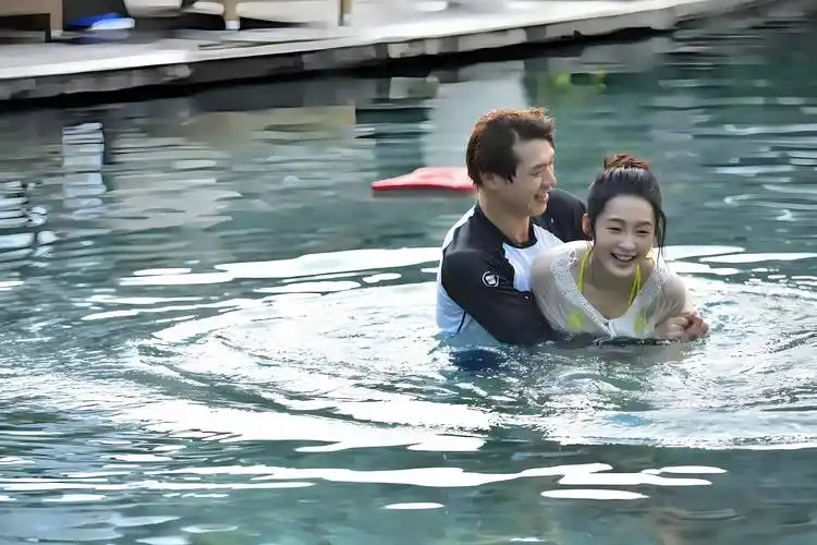 李沁和魏大勋在《我们相爱吧》中的泳池戏水剧照,到底是甜蜜还是过于