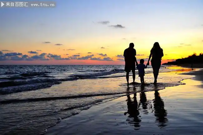 一家三口海边沙滩背影图片