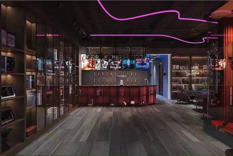 大厅-酷炫科技风主基调为暗黑科技风,满足饮品,酒类,剧本杀,狼人杀等