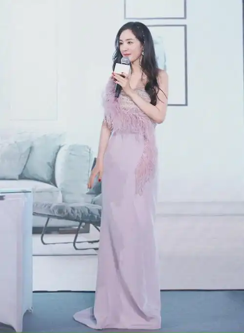 杨幂 姐姐就是嘴甜##杨幂抹胸绸缎羽毛裙