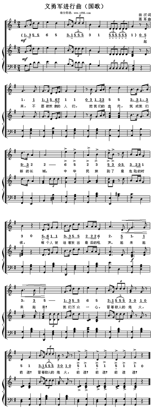 义勇军进行曲简谱乐谱