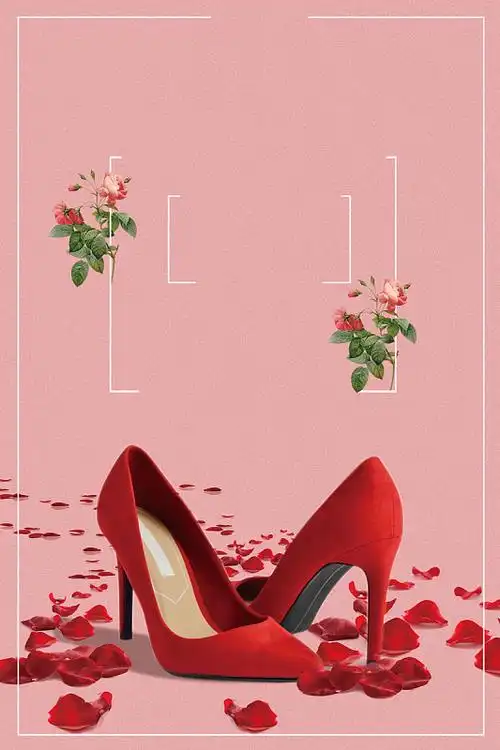 白色背景中一双红色的高跟鞋