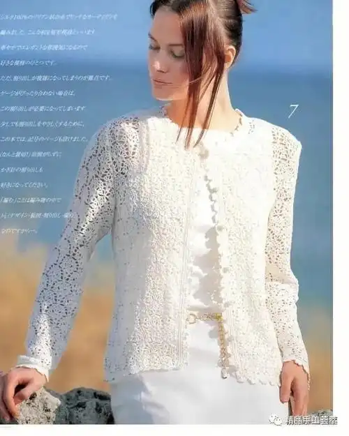 经典改版:女士钩针亮片丝麻葱衣开衫(附教程)
