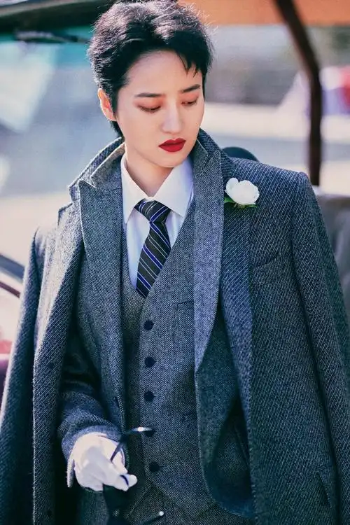 蒋一侨出席电影行业大会 金丝线混纺西装高级感十足