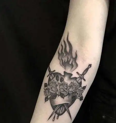 心脏纹身男生手臂上心脏纹身图案