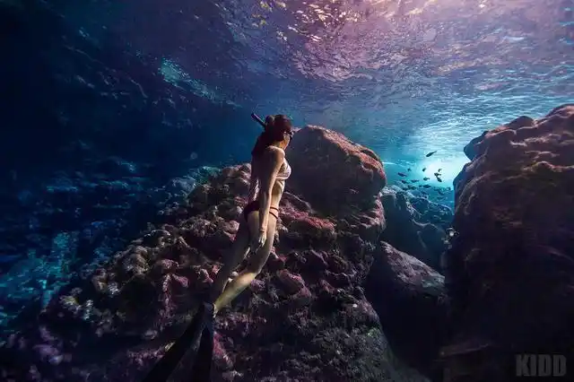 不会游泳的美女拍自由潜写真