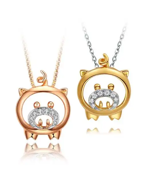 谢瑞麟18k金钻石吊坠女款时尚幸运星系列玫瑰金项坠