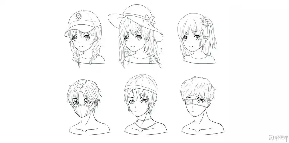 板绘插画90人物头像线稿临摹二次元头部结构