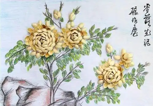 花盆里的花纽扣粘贴画作品欣赏