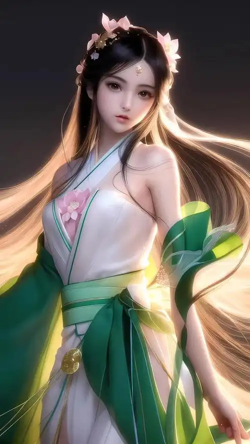 国风动漫穿着汉服的荷花女孩