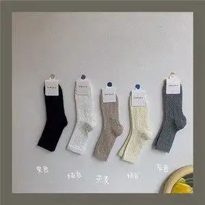三双袜子女士中筒日系复古浮雕花纹森系韩版潮流白色ins不起球