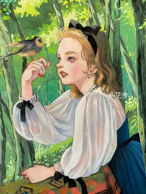 白雪公主水彩风插画
