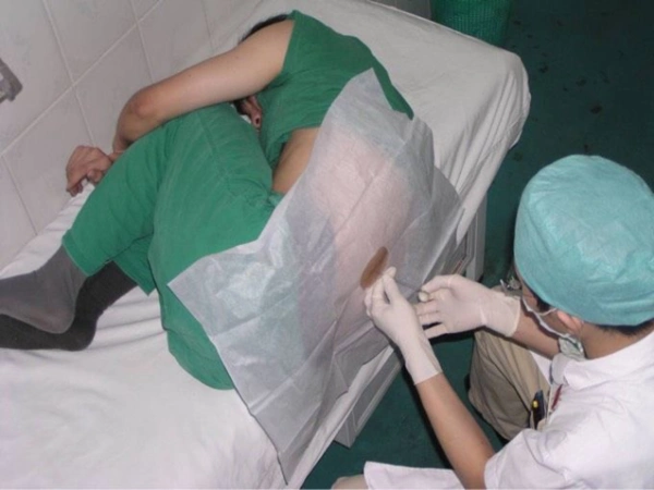 患者会感觉到麻醉医生在摸她的背部,其实这是我们在找穿刺点,并定位