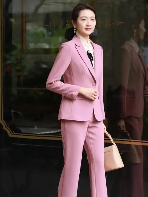 春季新款粉色西装套装.