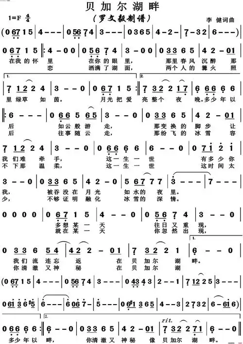 贝加尔湖畔简谱(歌词)_李健演唱_沈公宝制谱-明明简谱网