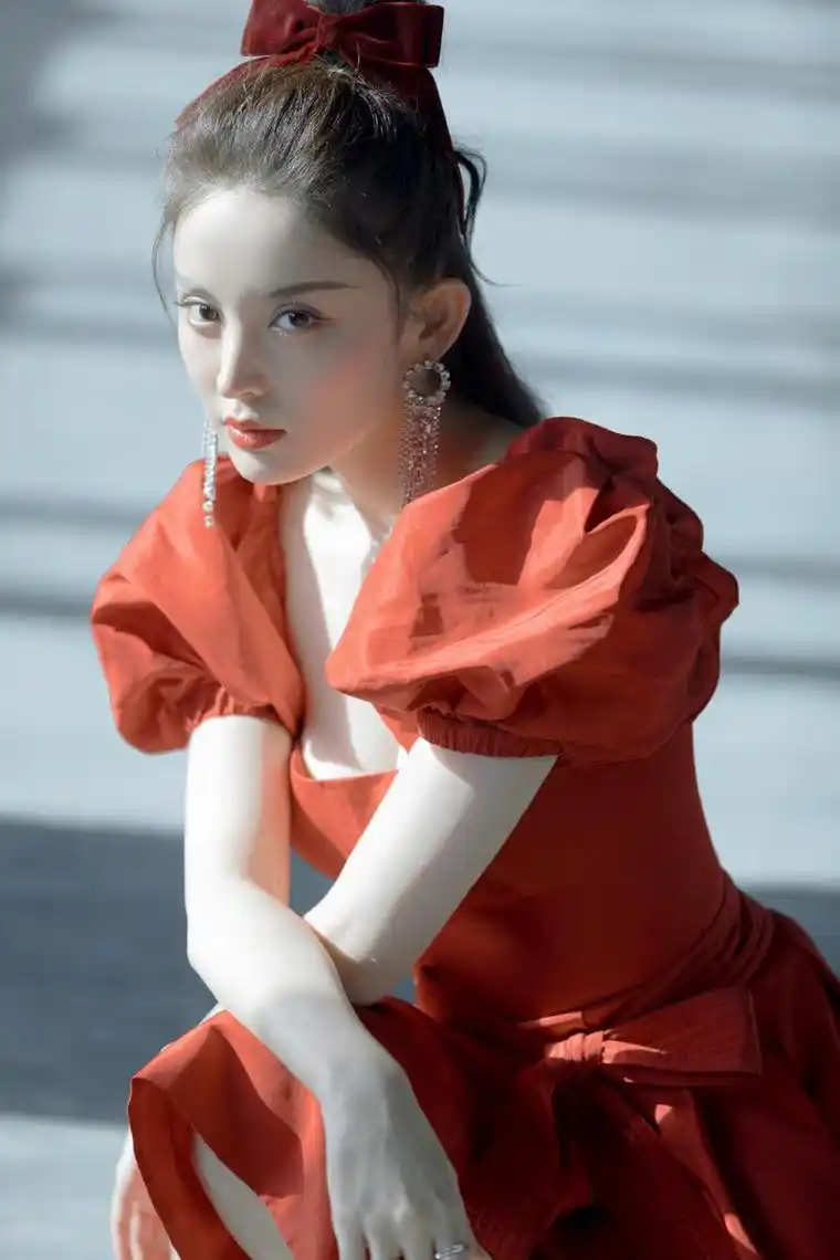古力娜扎 蝴蝶结红裙 冷艳写真