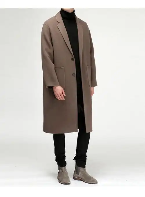 毛呢大衣男羊绒中长款连帽外套手工双面呢两面穿休闲羊毛呢子大衣