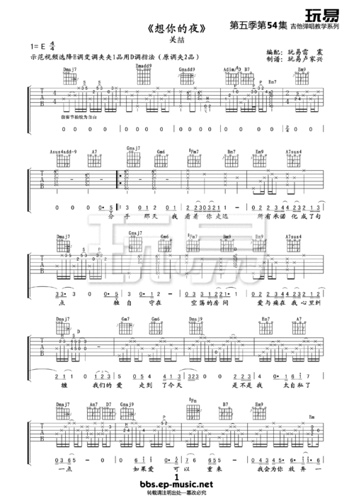 想你的夜 吉他谱 和弦谱