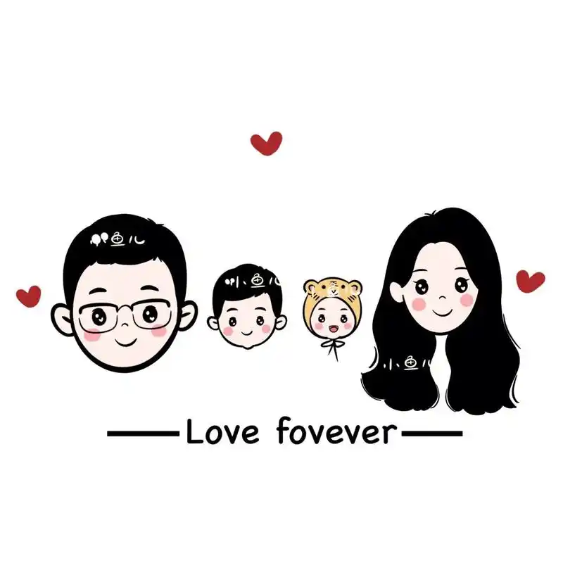 可爱卡通头像,一家四口手绘漫画全家福,简单的幸福更特别