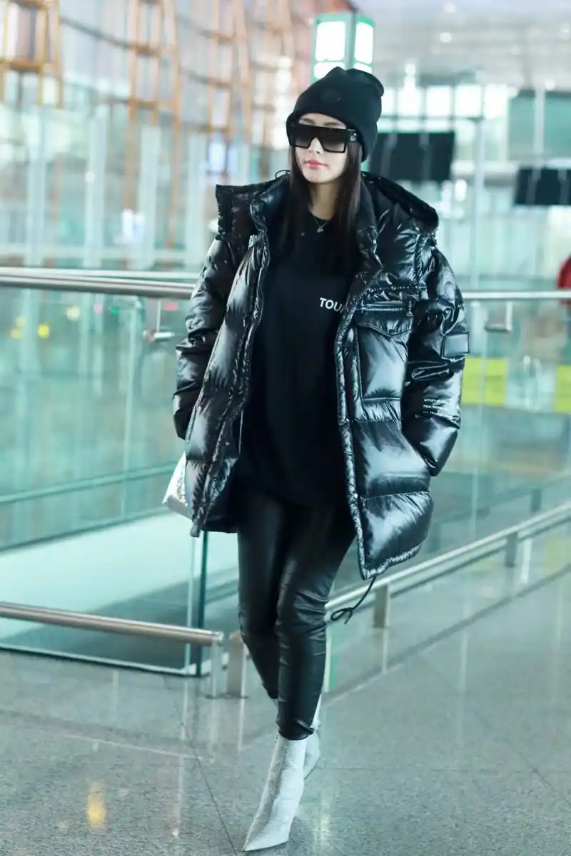 张天爱现身北京机场黑色衣着酷感十足