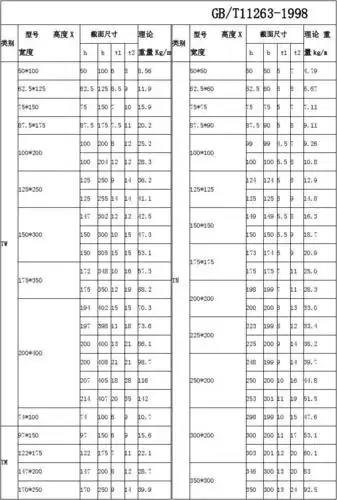 h钢t型钢规格表