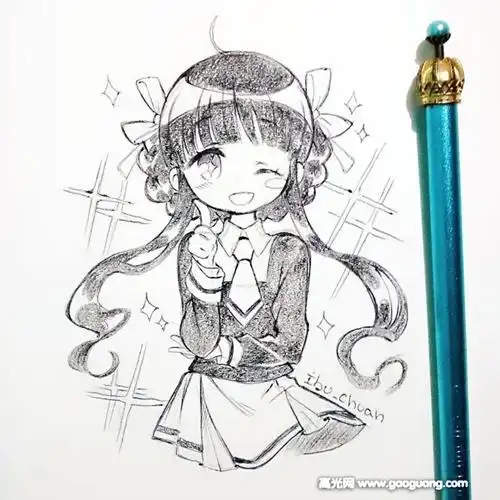 铅笔画q版人物萌图女_伊卟图库