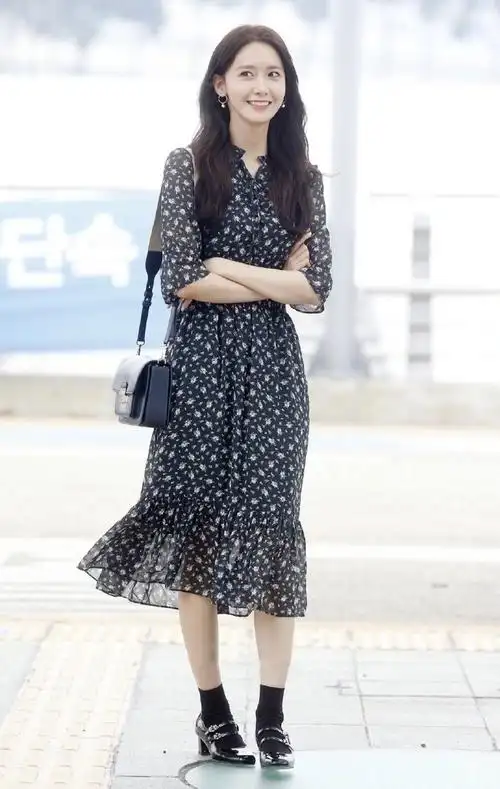 林允儿碎花长裙街拍图片