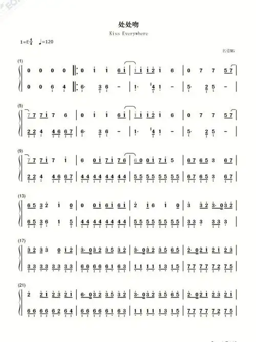 处处吻双手版古筝谱