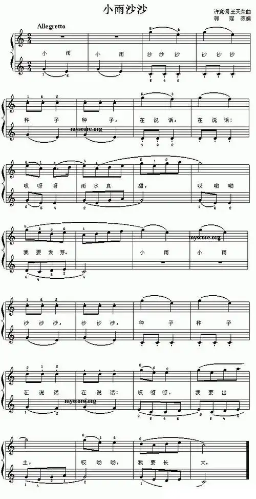 小雨沙沙(许竞词 王天荣曲) 提示:在曲谱上按右键选择"图片另存为"