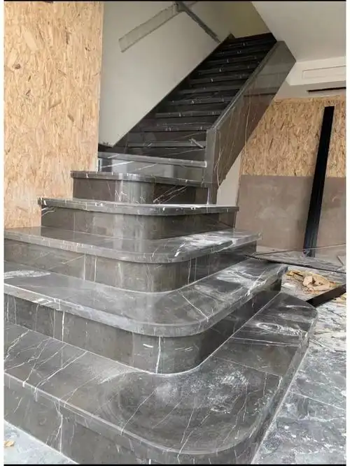 青岛装修网红大理石云朵拉灰楼梯踏步实景