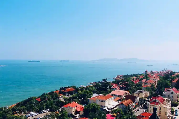 红瓦绿树碧海蓝天的青岛