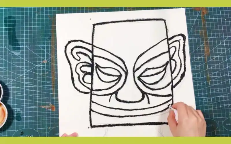 儿童画教程|探秘中国古文物《 三星堆青铜人面像》