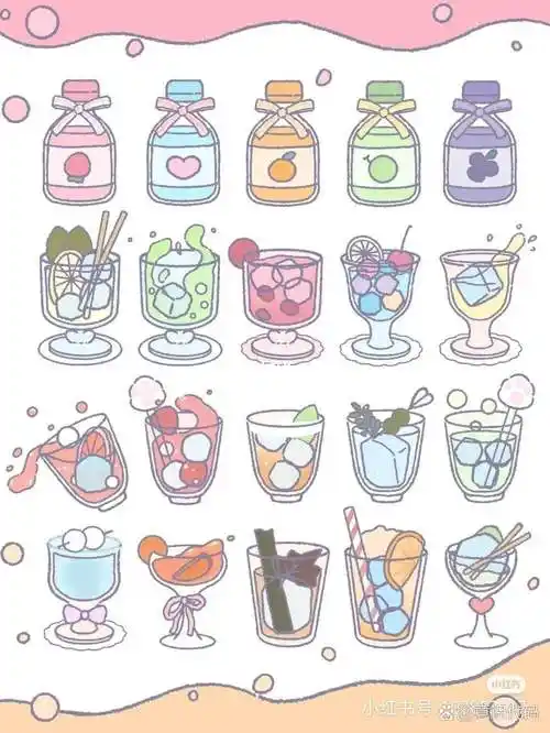 原创萌萌的简笔画手账素材夏日饮品