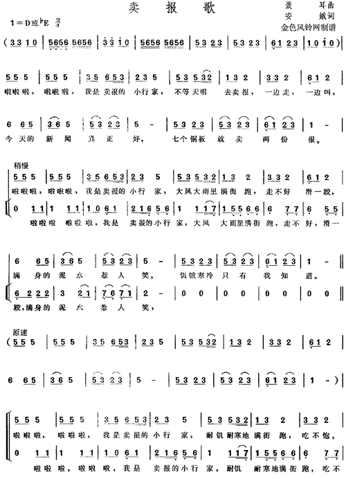 歌谱专区 歌谱分享 → 卖报歌 歌手:未知 分类:流行 格式:简谱