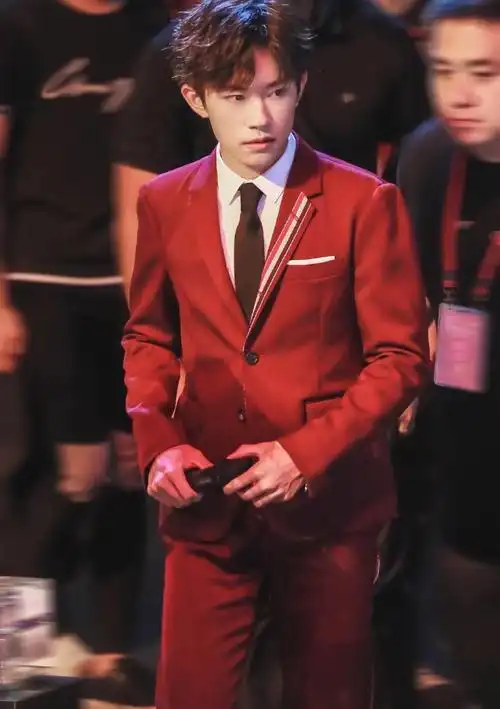 一身红色西装清朗俊秀|易烊千玺|红色|晚会_新浪网