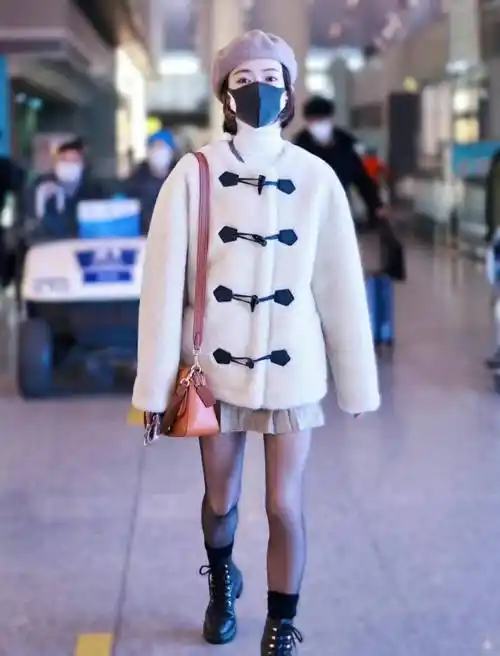 吴谨言认真打扮起来真洋气,穿蓝色毛衣搭配渔夫帽走机场,好时髦