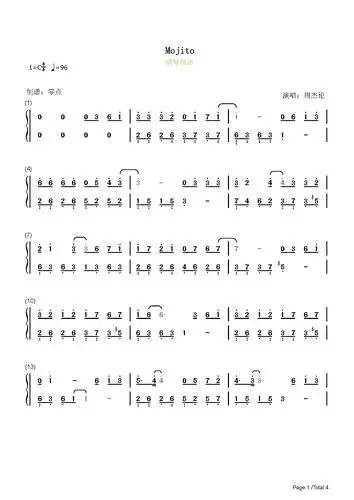 周杰伦《mojito》极限还原版 简谱.#钢琴谱 #指法 - 抖音