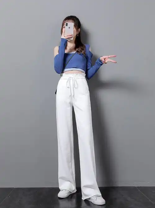 2020新款百搭纯棉春秋休闲白色运动裤女薄款宽松长裤小脚直筒卫裤