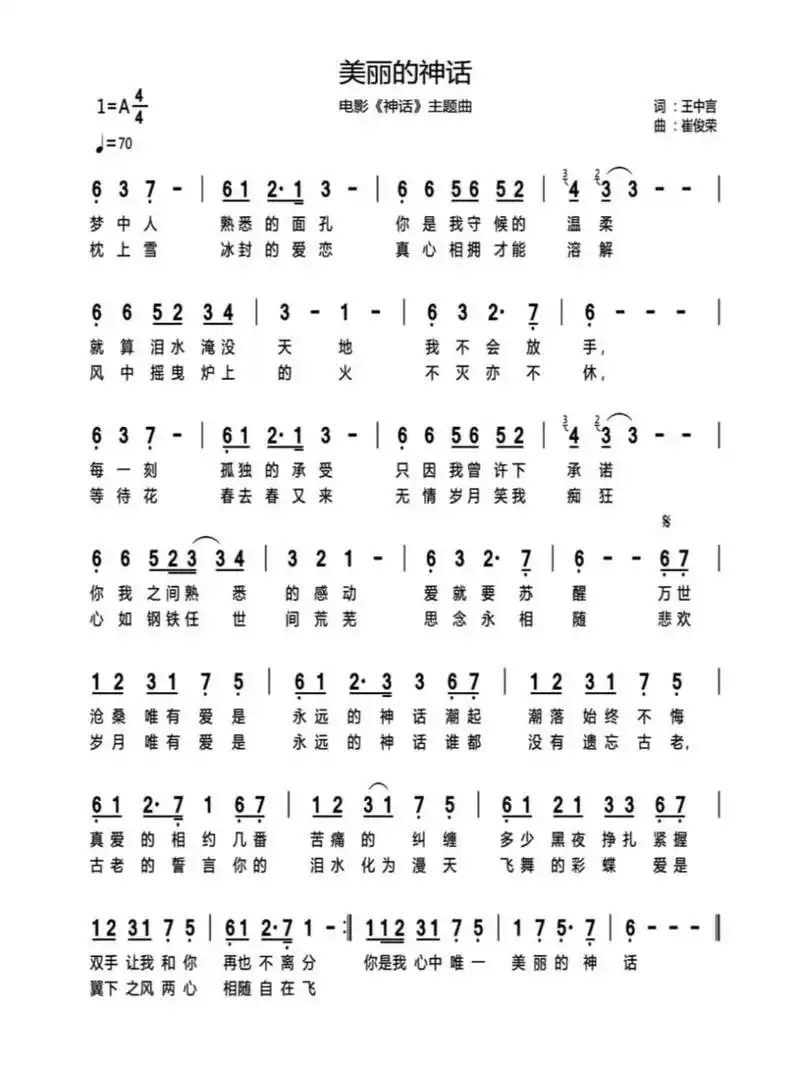 【美丽的神话简谱】美丽的神话(电影《神话》主题歌)简谱