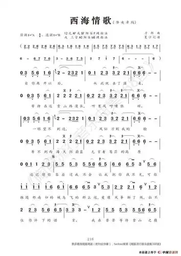 西海情歌歌词简谱