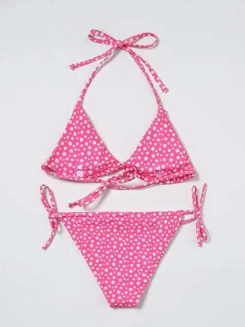 2024新款泳衣女三角包分体性感比基尼印花素色拼接泳装坑条bikini