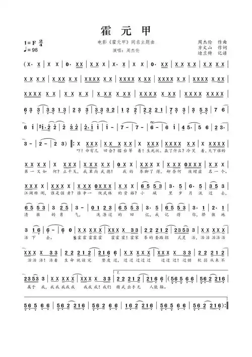 霍元甲简谱